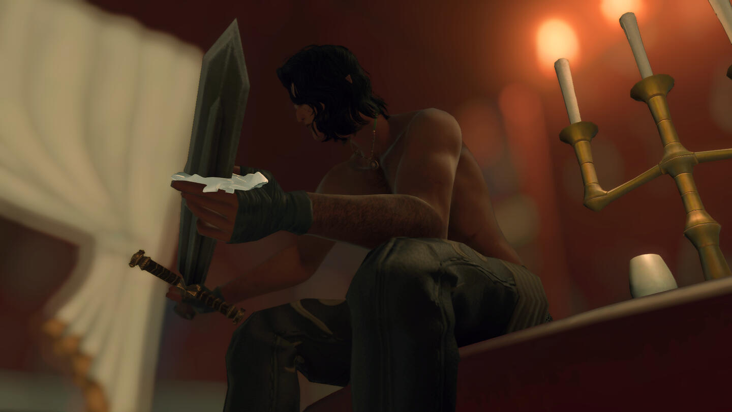 Val is ever one to brag-but the one who speaks the most of his youth is his father, Astor Chevalier-a traditional man who loves both Halone and his late wife in equal measure. The old man speaks often of how Val grew up a rockous and rowdy youth, overeager to prove himself, ever the brave little fighter. His demeanor took after his father, a retired knight nowadays, though his looks he apparently stole from his mother, with dark hair and skin both softer than most who bear both sword and shield.It is why the old man says he cannot bear to look at the young man for too long, nor why the portraits of the three of them have all since been removed from the walls of the manor. Too painful, as wonderful as the memories are. Though he is always one of the loudest cheering in the stands whenever his son takes up his weapons, blade or lance, to compete in the tournaments that have since celebrated the end of the war.Strange then, that neither speak much-if any-about those dour years of blood and battle. The strife leaves many within the city wordless yes, but one would think they had nothing to say at all given how quickly they both move on from the subject... Their home seems ever quiet, devoid of a large family, never hosting events, sometimes even rumored to be haunted. Val often seeks warmth elsewhere, coming alive in conversation and companionship among others. It does however leave a nasty line of rumors in his wake however, as many will attest to his habit of flirting...