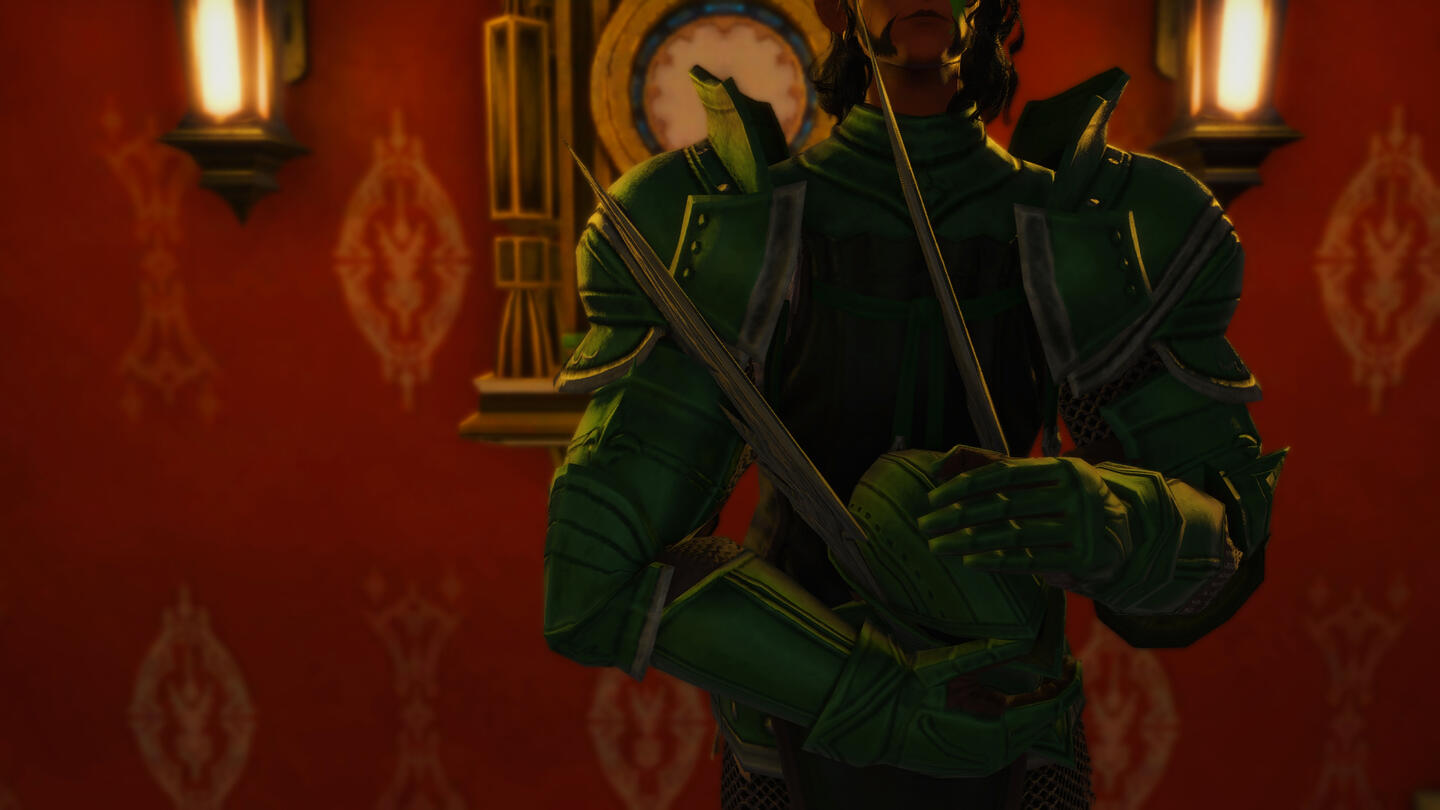 Tall, noble hearted, and not the brightest, Val is a man who seeks to embody the knights in shining armor children read of in fairytales. The son of a minor noble house of Ishgard, he is always dressed to impress or outfitted in his iconic verdant armor. Despite his scars-trophies from his time wielding both the lance and the sword-he is noted to be quite handsome, with a sharp gaze, tongue, and humor to boot. Still, there lies a darkness behind those eyes, and a sadness that not many know of...